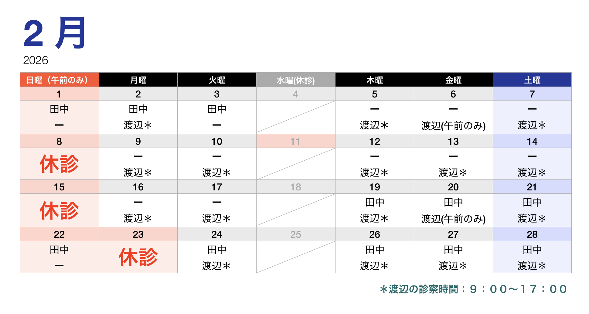 ※水曜日・日曜日午後・祝日は休診日となっております。