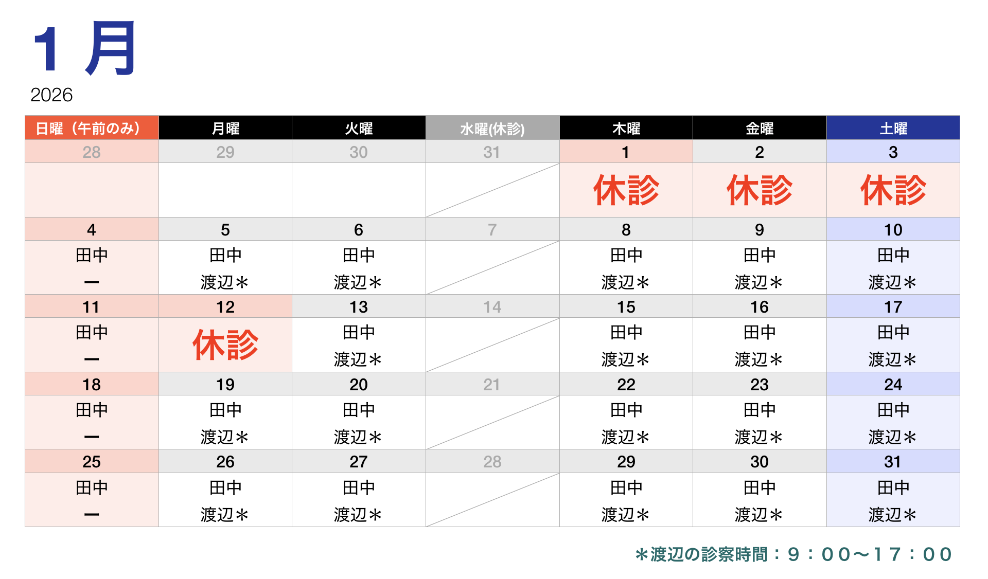 ※水曜日・日曜日午後・祝日は休診日となっております。